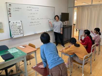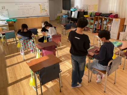グループ学習の時間です。それぞれのグループで、4校交流会を盛り上げるための準備を進めています。