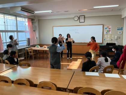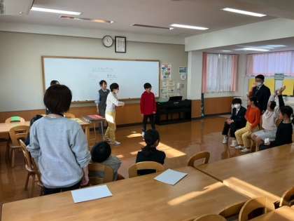 ランチルームに移動して、ジェスチャーゲームで交流しています。ジェスチャーが上手でよく当たります。