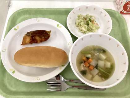 献立 ミルクパン、イギリス風フィッシュフライ、スコッチブロス、コールスローサラダ、牛乳