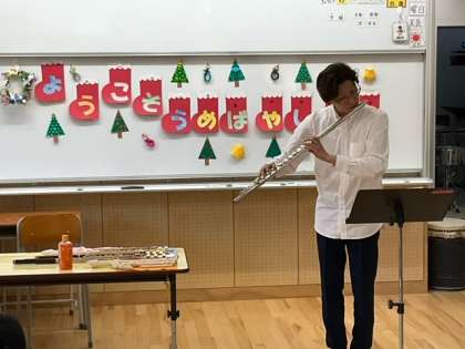 フルート奏者の梅林先生による「フルートコンサート」を開催しています。すてきなフルートの音色が響いています。