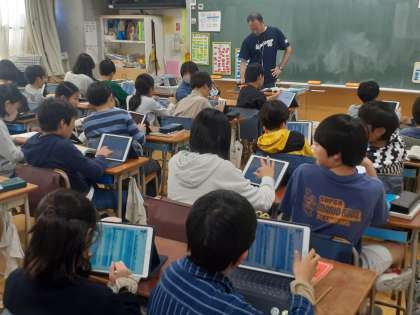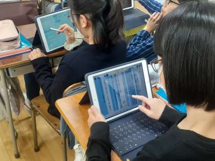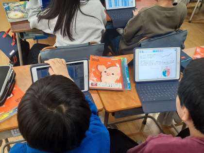 国語の時間です。学習したことを生かして、グラフや表を利用して書いています。