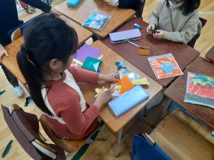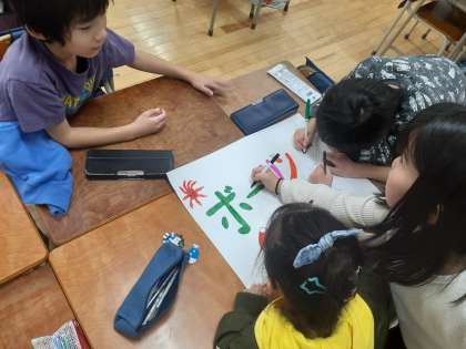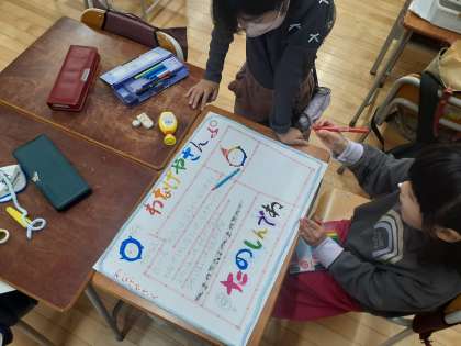 学活の時間です。お楽しみ会の準備を一生懸命しています。当日が楽しみです。