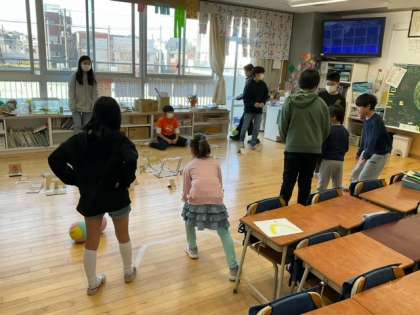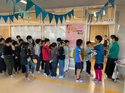 いよいよキッズフェスタがスタートしました。6年生が遊びを考え、5年生が下級生を引率しています。