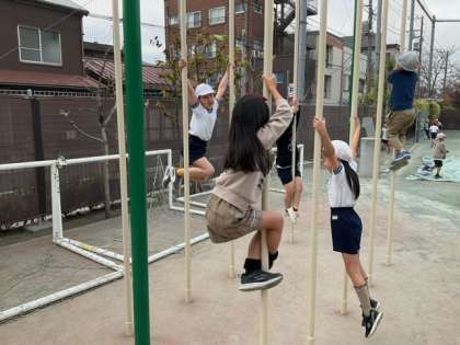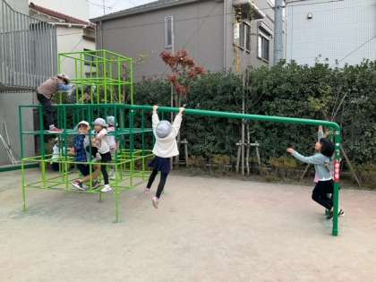 登り棒にジャングルジム、おにごっこ。今日も元気いっぱいで楽しそうです。