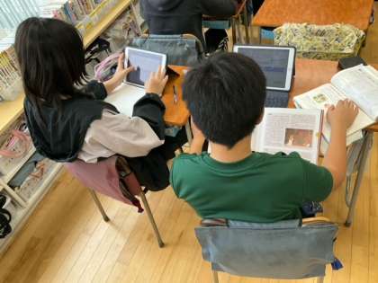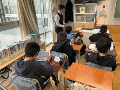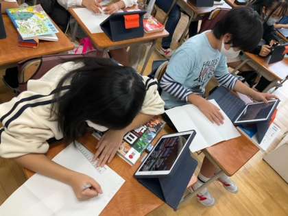 国語の時間です。「日本文化を発信しよう」日本文化の良さが伝わるように、見せ方を工夫してリーフレットにまとめていきます。