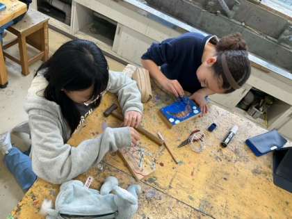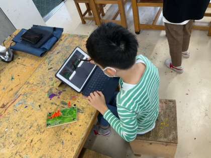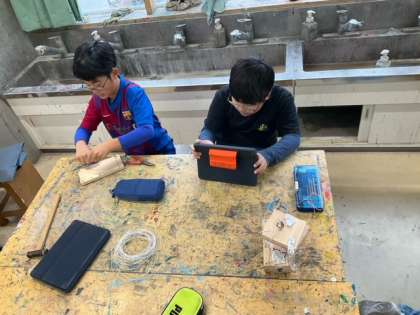 図工の時間です。「ワイヤードリーム」作品の工夫が伝わるように写真を撮って、ロイロノートで提出します。