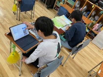 総合的な学習の時間です。都道府県調べに取り組んでいます。今日は、東京都を調べています。