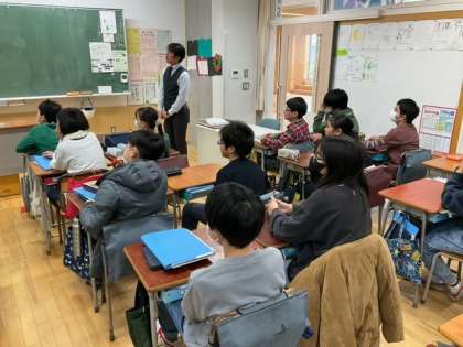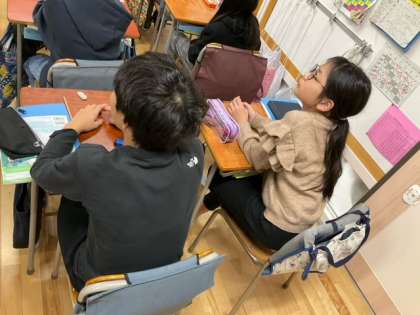 外国語の時間です。「ワールド・マネー・クイズ」に挑戦しています。みなさん、よく知っていますね。