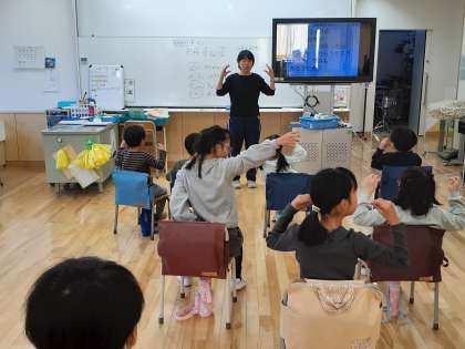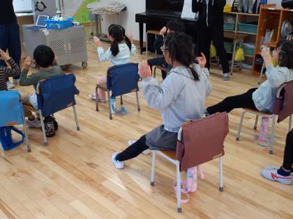 四校交流会の準備をしています。手話で歌を歌う練習をしました。