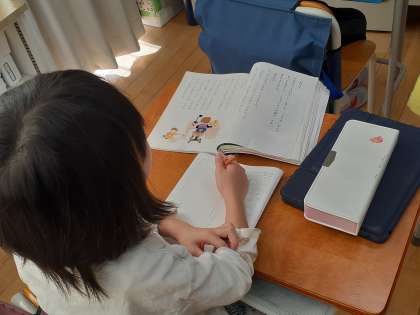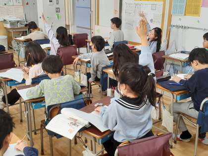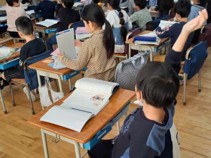 国語の時間です。登場人物の気持ちを教科書をよく読んで考えました。