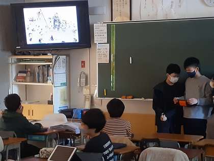 社会の時間です。興味のある人物や出来事について、iPadにまとめて発表しました。