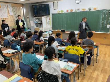 国語の時間です。3年2組の研究授業の様子です。がんばっていますね。