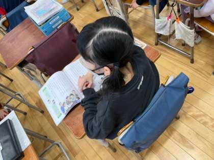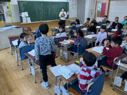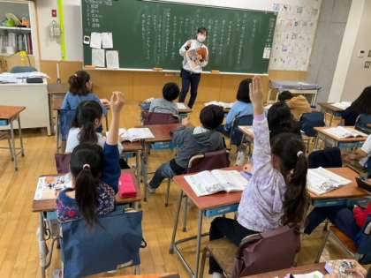 道徳の時間です。「やくそく」命の大切さについて、みんなで考えています。