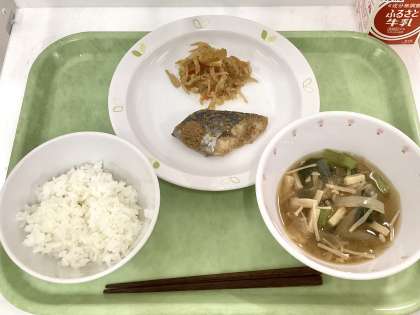 献立 ご飯、さわらのごまだれかけ、切干大根の煮付け、高野豆腐のみそ汁、牛乳