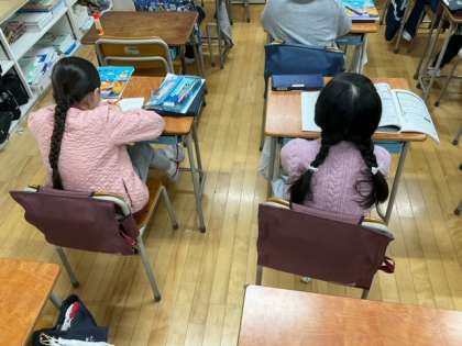 算数の時間です。もとの長さを1とみて、2つの数を比べています。