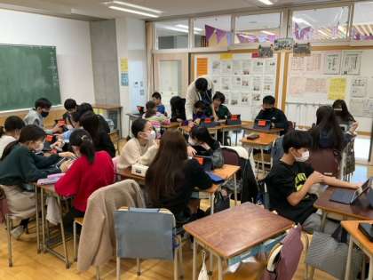 総合的な学習の時間です。未来の社会は、どのようになっているのでしょうか? そして、その社会で求められる能力は?