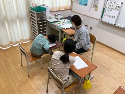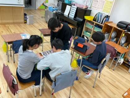 グループ学習の時間です。6年生は、2学期終業式の代表児童の言葉を担当します。がんばってくださいね。