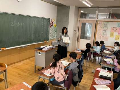 国語の時間です。「てがみで しらせよう」うれしかったことや楽しかったことを手紙に書いてみます。誰に伝えたいのかな?