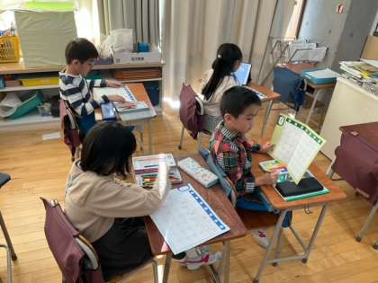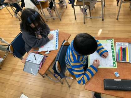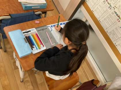 算数の時間です。2学期のまとめとして、算数カレンダーを作っています。