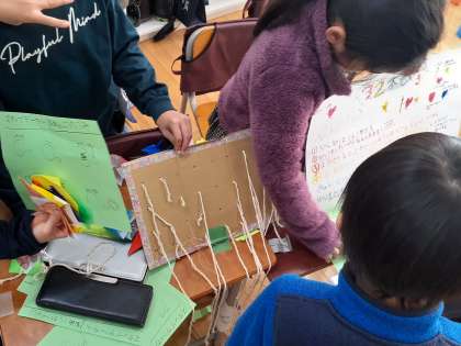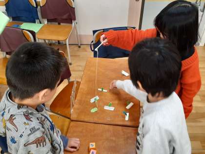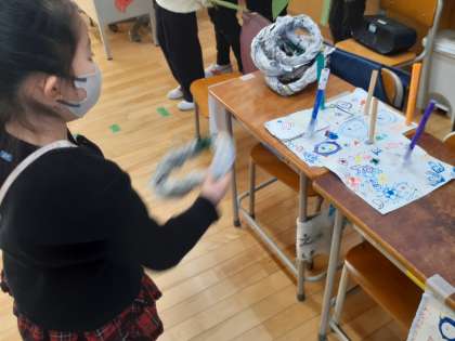 お楽しみ会の時間です。自分たちで話し合って、準備しました。とても楽しそうです。