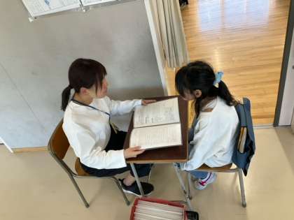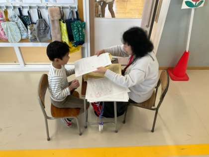 担任の先生から、メッセージとともに通知表が手渡されました。先生の言葉にしっかりとうなづく姿が印象的でした。