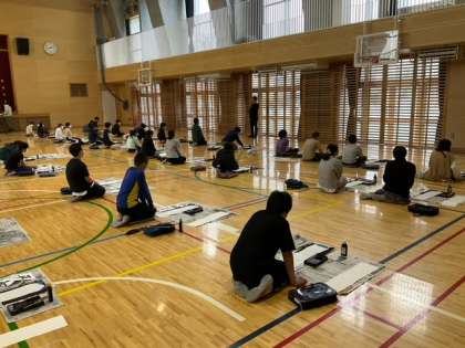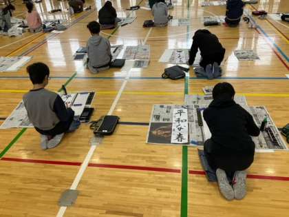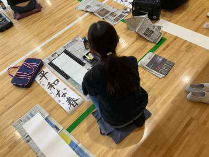 書き初め会です。今年一年が良い年になるように願って、心を込めて書きましょう。