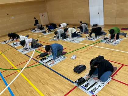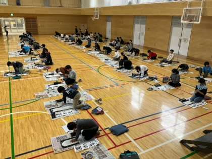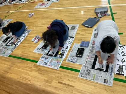 書き初め会です。今年の題字は、「豊かな心」。大きく成長してくださいね。