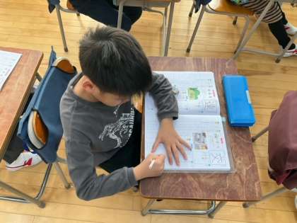 国語の時間です。漢字の練習をしています。「走」と「交」、どんな使い方があるのかな?