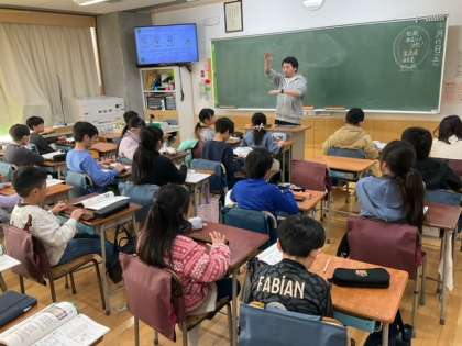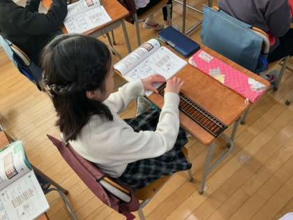 算数の時間です。「そろばん」そろばんを使って、たし算やひき算をしてみましょう。