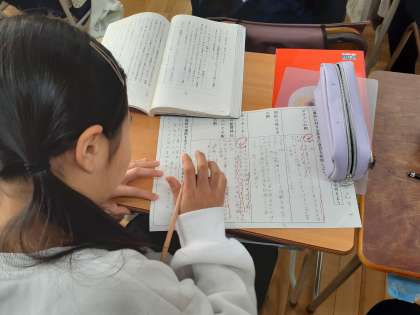 国語の時間です。説明文の書き方から筆者の意図を考えました。