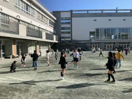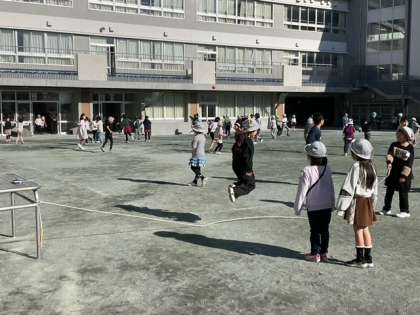 風が少し冷たいですが、いつものように元気な昼休みです。縄跳びをする子が増えてきました。