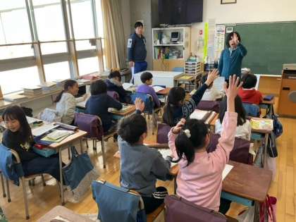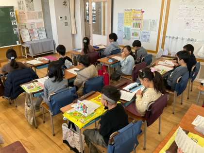 音楽の時間です。2月の音楽朝会で全校合唱で歌う「Smile 」(ゆず)の練習をしています。元気が出る曲ですね。