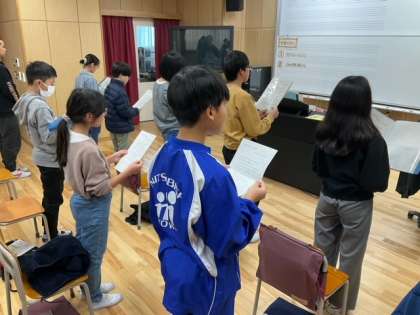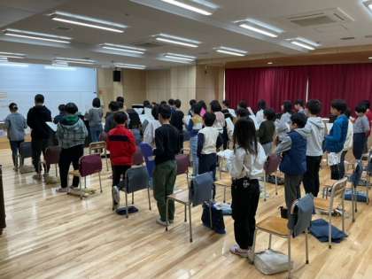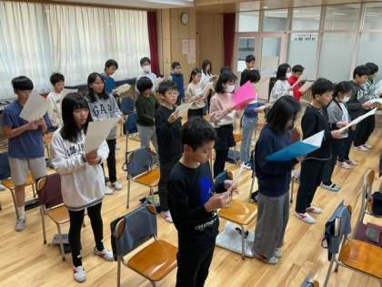 音楽の時間です。「友だちはいいもんだ」卒業式での一曲です。いい曲ですね。