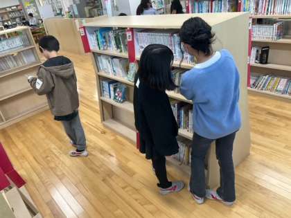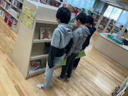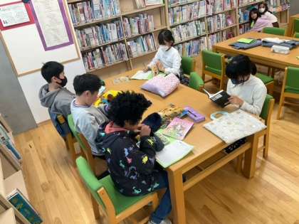 読書の時間です。今年の干支は「辰」です。図書室には、「龍」の特設コーナーができました。