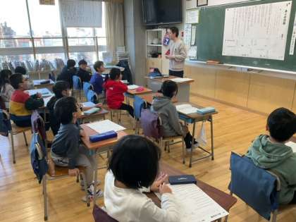 国語の時間です。「ありの行列」3の段落には、どんなことが書いてあるのか、順序を表す言葉に注目してまとめています。