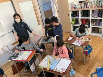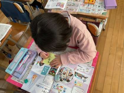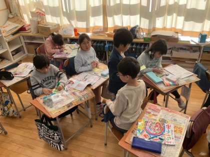 図工の時間です。「あなのむこうは ふしぎなせかい」物語の主人公が、穴の向こうで何をするのでしょうか?