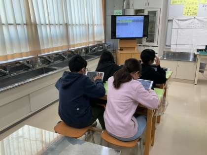 家庭科の時間です。「冬を明るく暖かく」冬の生活をよりよくするための工夫をまとめています。