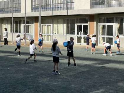月曜日の1時間目、1年生の校庭体育の時間です。身体も頭もスウィッチが入りますね。
