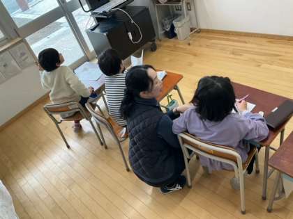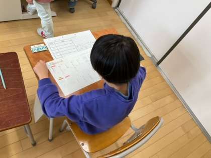 グループ学習の時間です。先週は、小松菜をたくさん採りましたね。美味しく食べたかな?