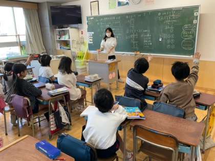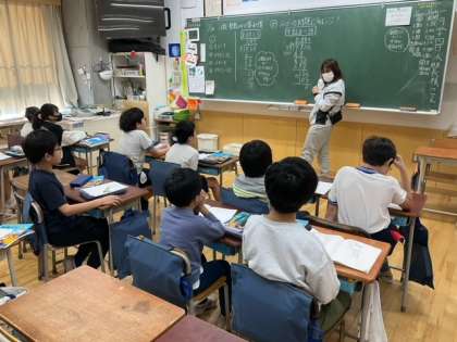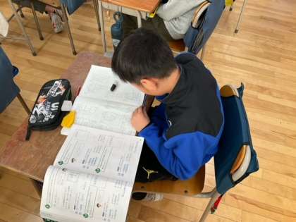 算数の時間です。「小数と整数のかけ算・わり算」チャレンジ問題にも挑戦しています。