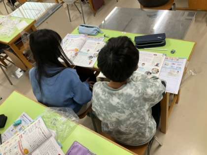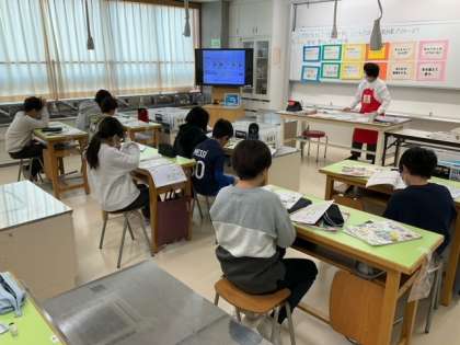 家庭科の時間です。「物を生かして 住みやすく」3R(リデュース・リユース・リサイクル)について学習しています。