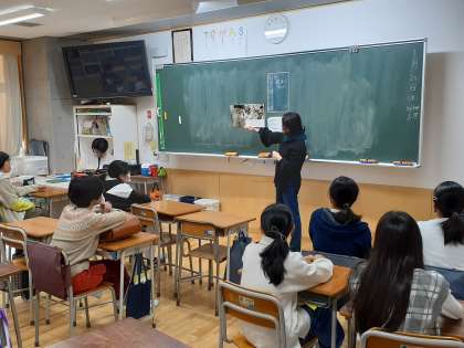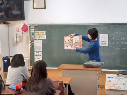読み聞かせの時間です。面白い話や頭の体操になる話もありました。