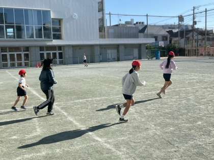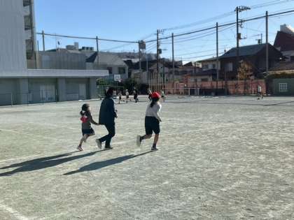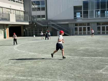 体育の時間です。持久走に取り組んでいます。継続は力なり。少しずつ記録を伸ばしましょう!