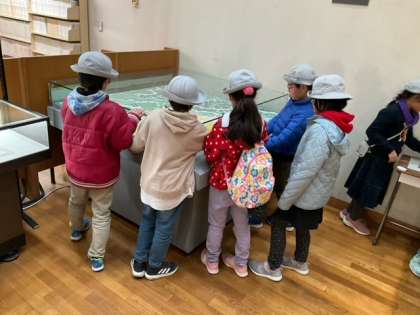 郷土資料館の見学が始まりました。ここでも3グループに分かれて見学します。