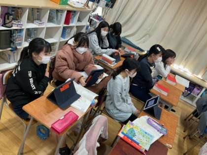 国語の時間です。卒業まで2ヶ月になり、いま、思っていることを伝えあっています。