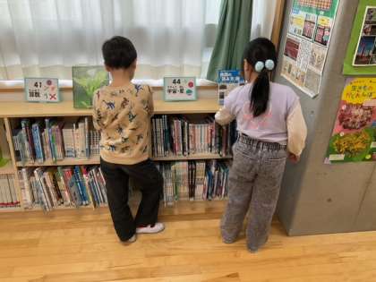 読書の時間です。宇宙や星に興味がある人がいますね。4年生になると、プラネタリウムに行きますよ。