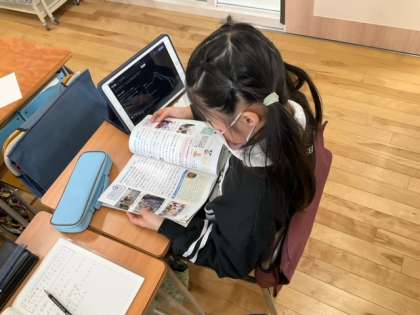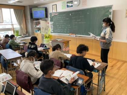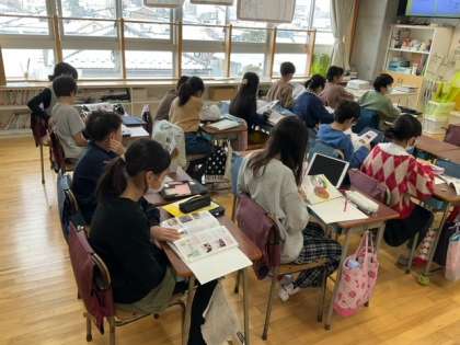 社会科の時間です。染め物産業を守るために、町の人たちはどのような活動をしているのかを調べています。
