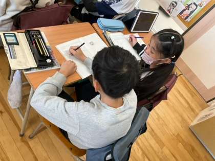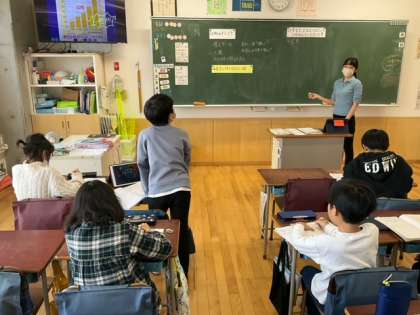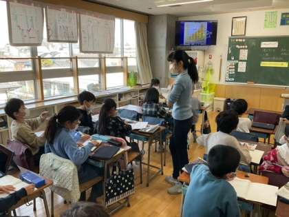 社会科の時間です。グラフを見て、びっくり。東京に住んでいる外国人がこんなに増えているのですね。