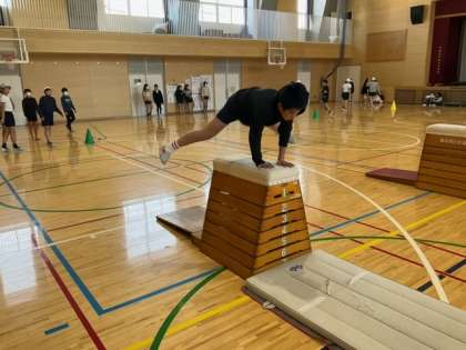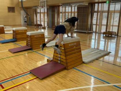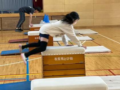 体育の時間です。跳び箱に挑戦しています。6年生は、迫力があります。