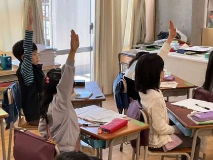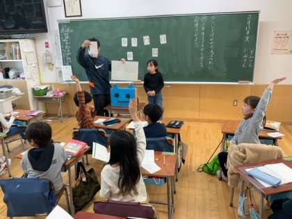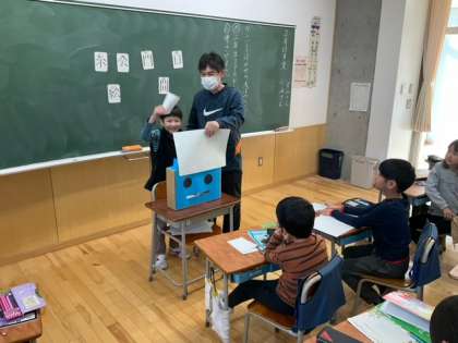 国語の時間です。「カンジーはかせの大はつめい」2年生までの漢字を合体させると